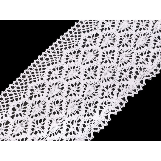 Široká paličkovaná čipka vdýchne vašim výrobkom a dekoráciám nádych vintage štýlu. Je pevná, vyrobená z kvalitnej bavlny.