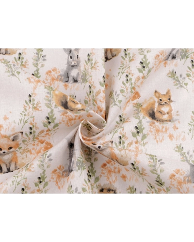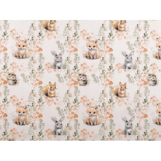 Bavlnená látka je vhodná na šitie vankúšov, detských obliečok, závesov, vreciek, tašiek alebo vreckárov. Nájdete na nej obrázky roztomilých zvieratiek .