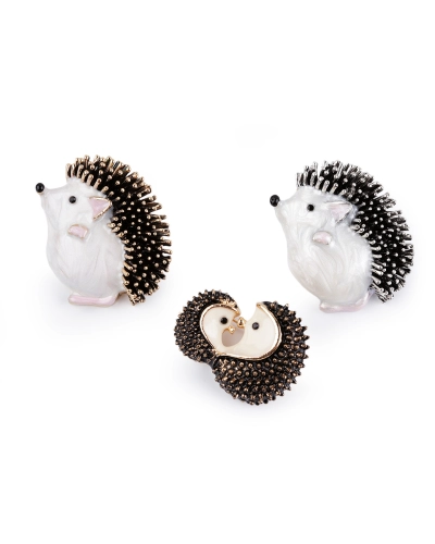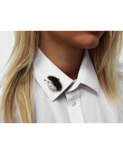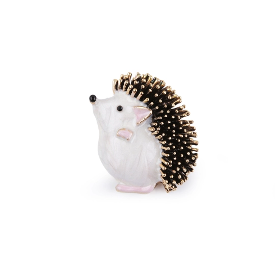 Brošňa ježka s farebným smaltom bude zaujímavou ozdobou vášho odevu. Je perfektne spracovaná s precíznym zameraním na detaily. Smalt má perleťový nádych, pichliače majú kovový lesk . Zo zadnej strany je brošňový špendlík. Brošne efektne pôsobia nielen na odevoch, ale sú vhodné aj na ozdobenie klobúkov, tašky či zopnutie šatky. Sú na plastovej karte, ktorú je možné zavesiť na predajné stojany. Brošňa č.2 nemá perleťový lesk.