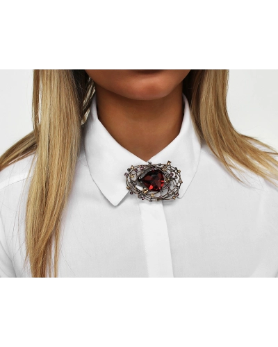 Elegantná brošňa s veľkým kameňom je výrazný módny doplnok, ktorý okamžite upúta pozornosť svojou žiarivosťou a luxusným vzhľadom. Jej kovový základ je vysadený ďalšími brúsenými kamienkami , ktoré vytvárajú jemné odlesky pri každom pohybe. Na zadnej strane má brošňový špendlík. Môžete ju nosiť na odevoch, čiapkach, klobúkoch, taškách či s ňou môžete zopnúť šatku. Brošňa je na karte, ktorú je možné zavesiť na predajné stojany.