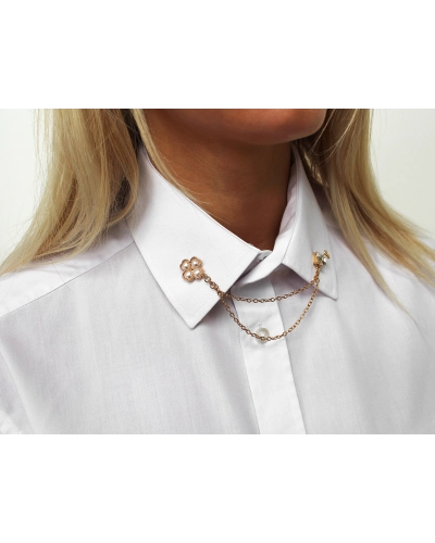 Brošňa / spona dragoun je elegantným doplnkom, ktorý zaujme na prvý pohľad svojim jemným a prepracovaným dizajnom. Je ozdobená brúseným kameňom a štvorlístkom , na ktorom nájdete lesklé perly . Oživí každý outfit. Štvorlístok je symbolom šťastia, brošňa môže byť aj malým talizmanom pre svojho nositeľa. Môže si ju pripnúť na sako, kabát, košeľu, blúzku aj tašku. Oba diely brošne majú jednobodové zapínanie ako odznaky.