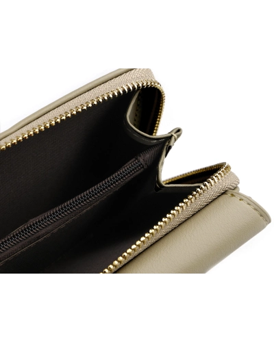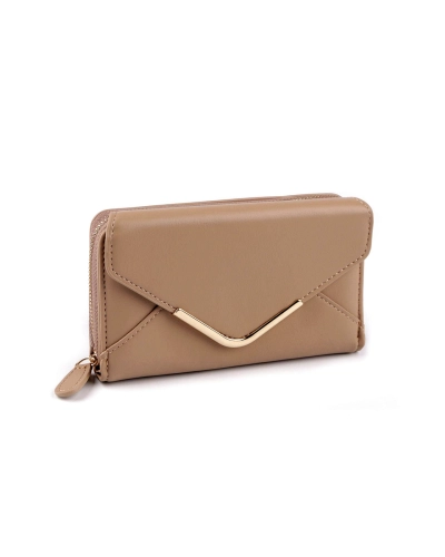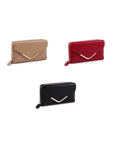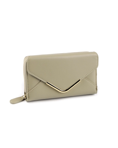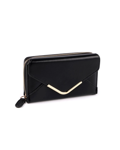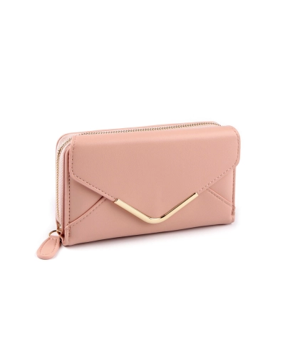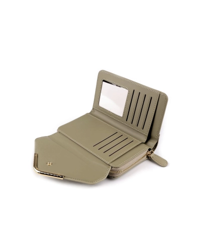 Dámska peňaženka je veľmi elegantná, má tvar malej listovej kabelky . Predný poklop peňaženky je ozdobený kovovým okrajom , peňaženka sa zapína na patent. Vnútri nájdete 8 priehradiek na kreditné karty, z toho 1 má priehľadné okienko. Je tu umiestnená aj priehradka na bankovky. Vrecko na mince nájdete na boku peňaženky, zapína sa na zips, je rozdelené prepážkou na dva oddiely.