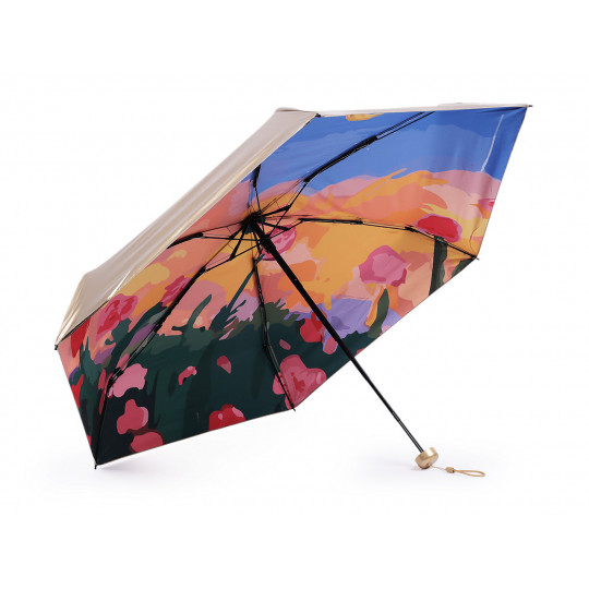Dámsky mini skladací dáždnik metalický, vo vnútri zdobený - 1 ks