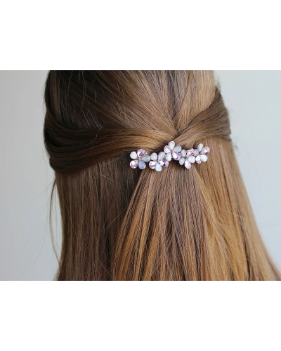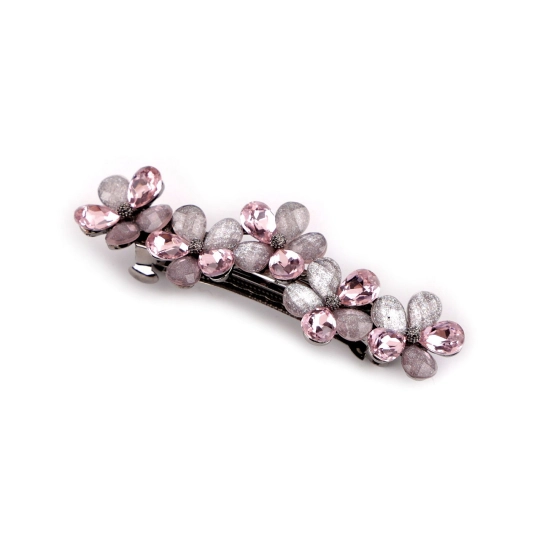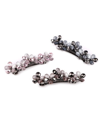 Francúzska spona zdobená akrylátovými brúsenými kvetmi luxusne ozdobí váš účes. Má nádherný lesk , ktorý priťahuje pozornosť. Luxusne ozdobí slávnostný účes. Či už máte jemné pramene alebo husté kučery, touto sponou ľahko zopnete vlasy do vrkoča alebo vytvoríte elegantný drdol, ktorý bude vyzerať, ako keby ho vytvoril profesionál. Spona má veľmi kvalitné celokovové prevedenie. Zacvakávací mechanizmus je pevný. Dĺžka časti pre vlasy je 4 cm.