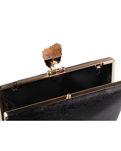 Kabelka s dizajnovým zapínaním v podobe listu je doplnkom, ktorý vyžaruje eleganciu a luxus. Zaujme svojou povrchovou textúrou a precíznym spracovaním. Je ideálnou voľbou pre večerné udalosti, spoločenské akcie či slávnostné večere. Kabelka má po celom obvode kovový rámček. Je pevne vystužená, jej súčasťou je dlhá odnímateľná retiazka na karabíny.