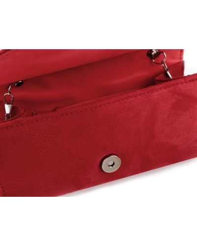 Malá elegantná kabelka v štýle listovej kabelky je vyrobená z jemného semišového materiálu , ktorý zaujme nielen na pohľad, ale aj na dotyk. Je ideálnym doplnkom pre večerné akcie, formálne udalosti aj slávnostné príležitosti. Listová kabelka je vystužená, vo vnútri má polyesterovú podšívku a malé vrecko na drobnosti. Súčasťou je tiež odnímateľná kovová retiazka . Zapína sa na magnet.