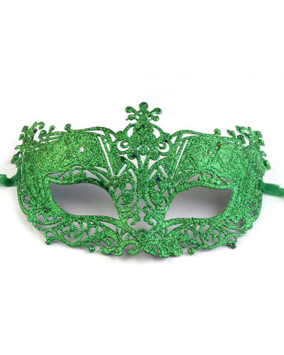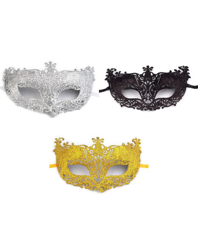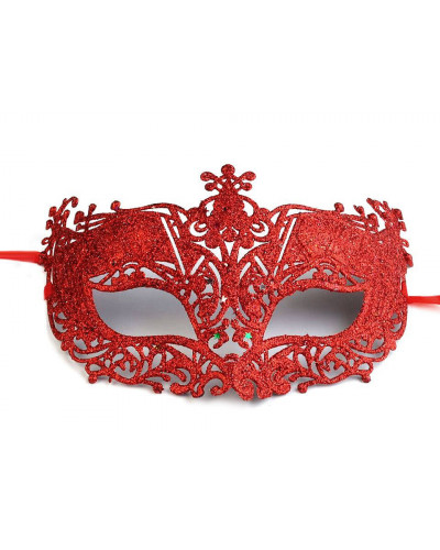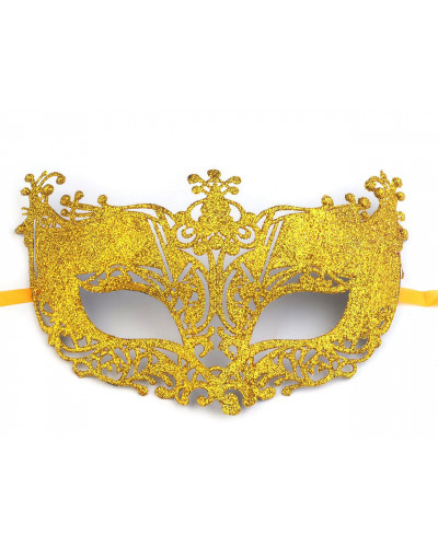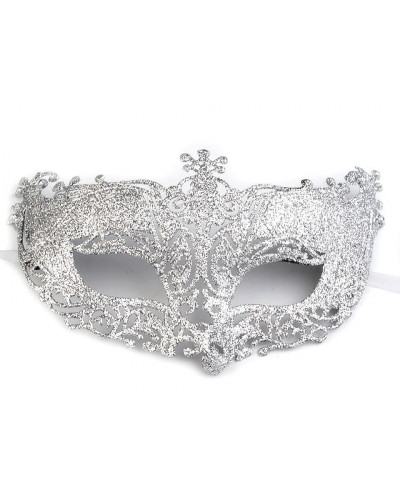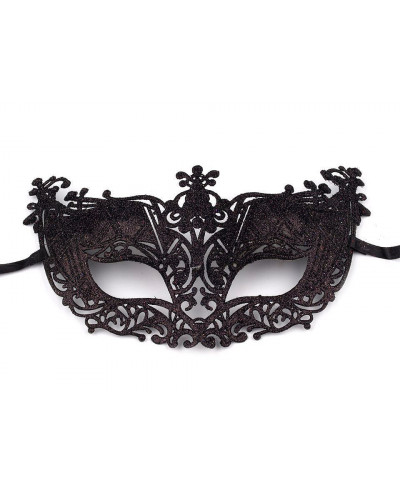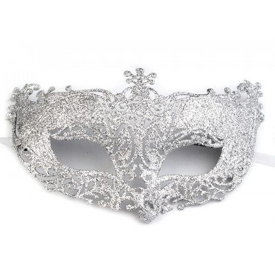 Úchvatná škraboška vyzerá ako keby bola vyrobená z jemnej čipky. Je však vyrobená z pevného plastu, ktorý dobre drží tvar. Trblietavé glitre dodávajú maske dramatičnosť. Zažiarite s ňou na karnevaloch, večierkoch alebo na párty. Maska sa zaväzuje pomocou saténovej stuhy. Nakoľko sú glitre na škraboške nalepené, môžu ľahko opadávať.Maska je zlacnená, pretože niektoré miesta na nej môžu byť nedofarbené alebo odpadávajú glitre.