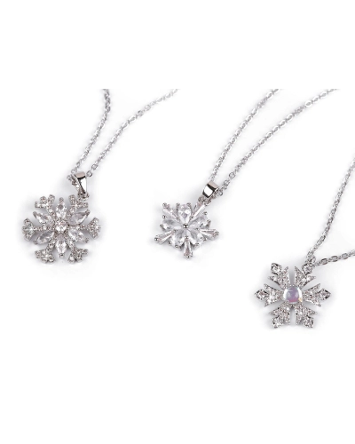 Retiazkový náhrdelník s príveskom vločky je elegantný šperk vyrobený z kvalitnej nerezovej ocele . Prívesok sa nádherne trblieta , je vysadený brúsenými kamienkami . Je zavesený na šlupne, voľne sa na retiazke pohybuje. Zapína sa na karabínku s predlžovacou retiazkou.