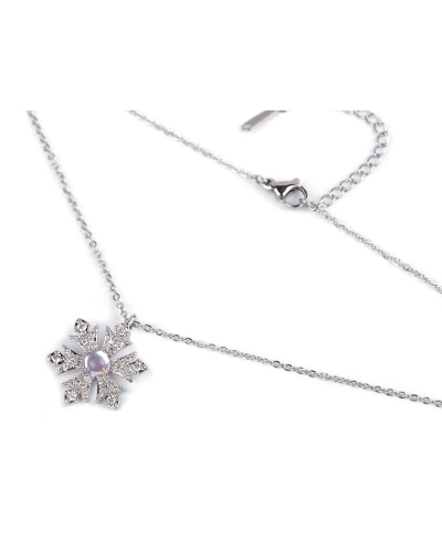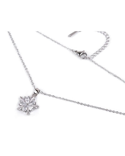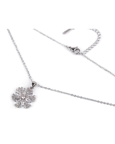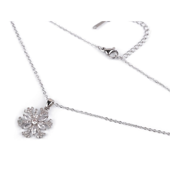 Náhrdelník z nerezovej ocele vločka s brúsenými kamienkami - 1 ks