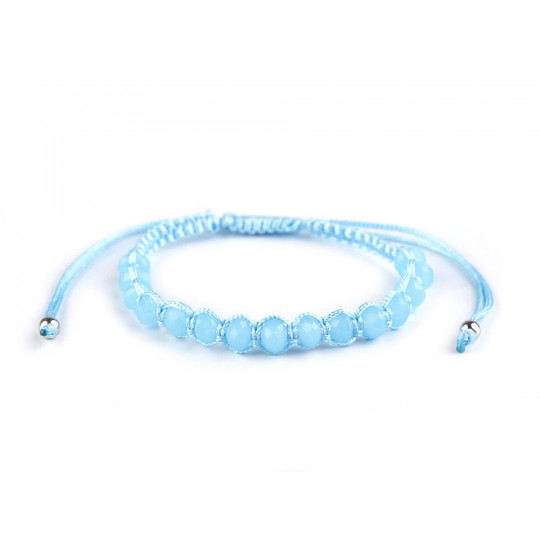 spôsobuje jemné trblietanie a lesk. Skúste skombinovať viac náramkov naraz, vaše zápästie bude veľmi pôsobivé a in.Zapínanie je posuvné, oba konce náramku prechádzajú macramé spojkou, ktorá umožňuje utiahnutie šnúrok. Vďaka nej má náramok univerzálnu veľkosť. Konce sú ozdobené plastovými korálikmi.