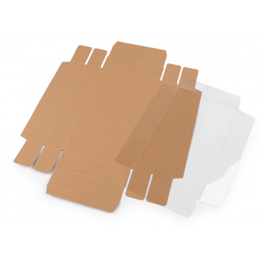 Papierovú škatuľu s priehľadným vekom využijete na balenie darčekov, šatiek, rukavíc a pod. Takto zabalený darček je veľmi pútavý, pretože je naň hneď vidieť. Škatuľu dodávame v rozloženom stave (horné priehľadné veko - 18 x 27 cm, spodná časť krabice - 28,5 x 37 cm). Zložíte si ju jednoducho podľa vyznačených ohýbacích krajov. Pripravili sme pre vás foto návod na skladanie krabičky .