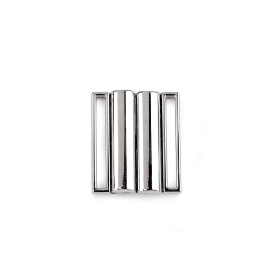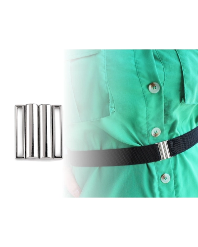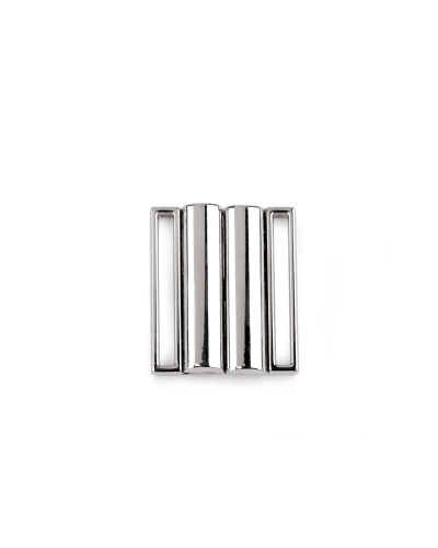 Kovové zapínanie sa skladá z dvoch dielov a zapnete ho vsunutím jedného dielu medzi druhý. Využijete ho na plavky, ale aj na výrobu opaskov. Povrch je odolný voči korózii . Rozmery jedného dielu spony sú 21 x 33 mm.
