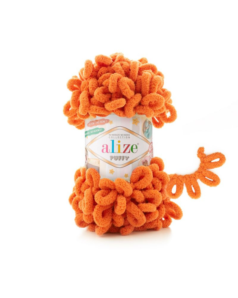 Alize Puffy s veľkými očkami. Priadza je určená na ručné pletenie, nepotrebujete ihlice ani háčik. Má viac ako 70 krásnych farebných prevedení.