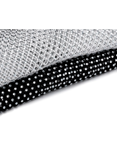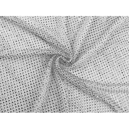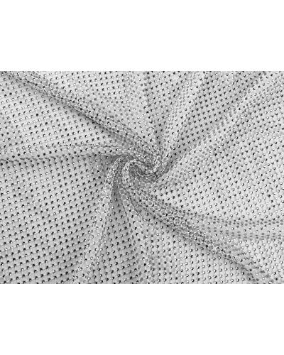 Sieťovina s brúsenými kamienkami je skvelá na šitie exkluzívnych modelov (večerných a plesových šiat, boleriek, tielok, blúzok a pod.). Pruží do všetkých strán. Kamienky sa efektne trblietajú . Materiál je splývavý, krásne sedí na tele, navyše sa nestrapká - nie je potrebné obšívať okraje. Pod šatami z tejto sieťoviny bude najlepšie vyzerať iba jednoduché body. Vďaka nemu vynikne úchvatnosť tohto materiálu . Dierky v sieťovine majú rozmery 4 x 6 mm. Šírka celej látky je 170 cm, časť s kamienkami má šírku 130 cm.