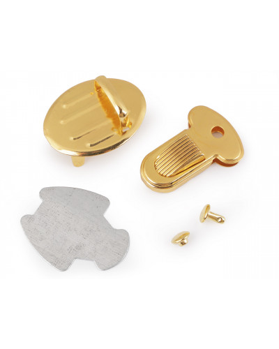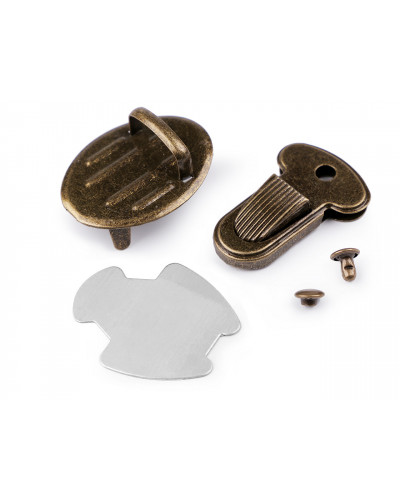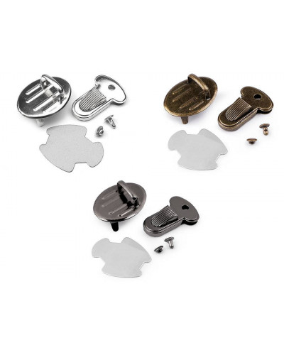 Zapínanie na kabelku či tašku sa skladá z dvoch dielov a pliešku. Jeden diel sa pripevní na na vonkajšiu časť kabelky, z druhej strany sa zaistí plieškom, a ďalší diel na chlopňu kabelky. Potom už len stačí zasunúť do seba tak, až budete počuť cvaknutie. Až potom je kabelka bezpečne uzavretá. Súčasťou sady sú nity, ktoré patria k dielu na chlopňu.