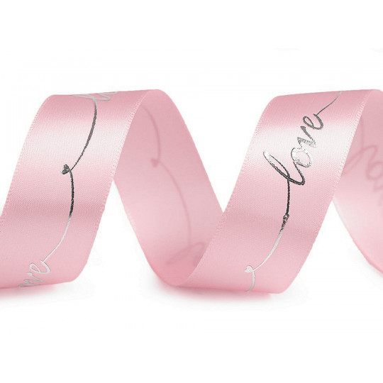 Saténová stuha s metalickou potlačou Love šírka 26 mm - 13.5 m