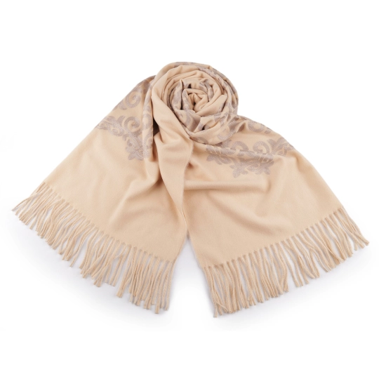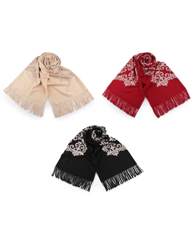 Šatka / šál vlnený so strapcami, výšivka 70x185 cm - 1 ks