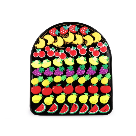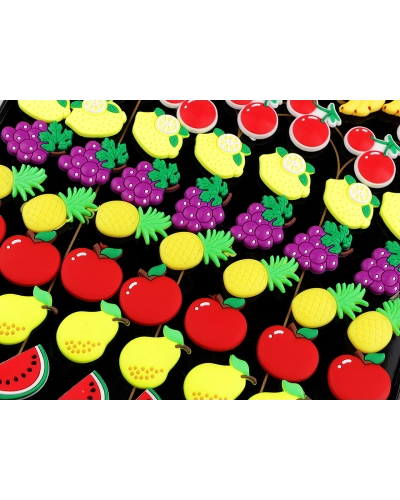 Silikónové magnetky s motívmi ovocia majú precízne spracované detaily a pútavé farby. Je možné ich opakovane upevniť na akúkoľvek kovovú plochu. Sú ideálne na organizáciu vašich poznámok, zoznamov úloh alebo fotografií. V kuchyni môžu poslúžiť ako skvelý spôsob, ako mať recepty alebo nákupné zoznamy vždy na očiach. V detskej izbe sa potom stanú zábavným doplnkom na rebríčku domácich povinností alebo ako dekorácia na magnetickej tabuli, ktorá rozvíja predstavivosť a kreativitu. Magnety držia na kovovej podložke, ktorá má otvor na zavesenie na predajný stojan. Jej rozmery sú 22,5 x 27,5 cm.