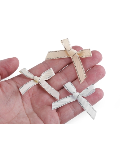 Svadobná / dekoračná rypsová mašlička s lurexovým okrajom - 10 ks