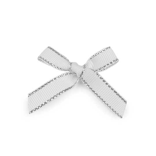 Svadobné mašličky využijete na výrobu voničiek aj rôznych dekorácií . Sú pevné, uviazané z obojstrannej rypsovej stuhy širokej 10 mm, ktorá je po bokoch pretkaná lurexom . Dodajú elegantný a žiarivý nádych svadobčanom, ale aj iným vašim tvorivým projektom. Oceníte ju tiež ako skvelý detail na ozdobnom balení darčekov.