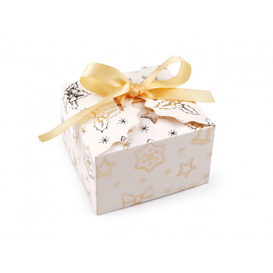 Vianočná darčeková krabička so zlatou potlačou a stuhou - 12 ks