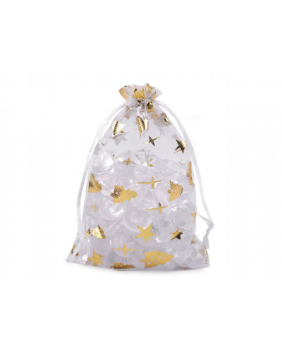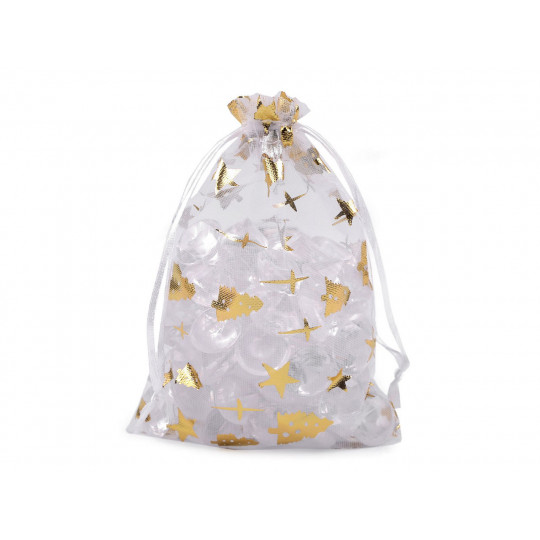 Vianočné darčekové vrecúško stromčeky 10x14,5 cm organza - 10 ks