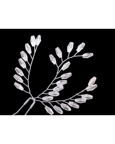 Elegantná vlásenka s brúsenými korálkami nádherne ozdobí slávnostný účes. Pôsobí krehkou krásou, pripomínajúcou ľadové kráľovstvo. Sklenené koráliky sa vďaka výbrusu jemne blýskajú, celá ozdoba je vo vlasoch neprehliadnuteľná. Vďaka drôtikom ju môžete tvarovať. Je vhodná do spoločenských účesov aj pre nevesty v ich deň. Náš tip: vlásenka dokáže kúzelne ozdobiť tiež kvetinové väzby, dá sa zakomponovať napr. do kytice pre nevestu.